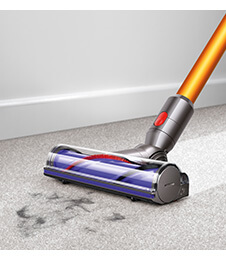 Direct-drive cleaner head drives bristles deeper into the carpet to remove even more dirt. 150% more brush bar power than the Dyson V6 Cord-Free vacuum.